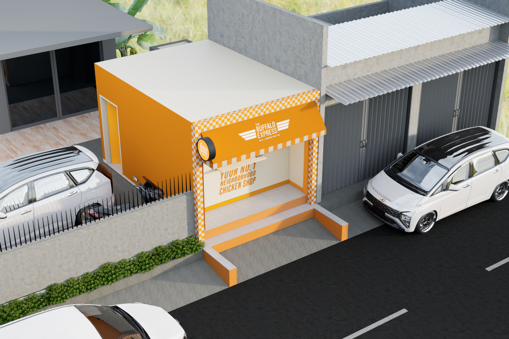 Desain ini bukan sekadar toko ini adalah instalasi visual yang mengubah sudut jalan yang gelap menjadi titik fokus yang energik. Konsep utamanya adalah Compact Impact—memaksimalkan dampak visual dalam jejak bangunan (footprint) yang kecil.