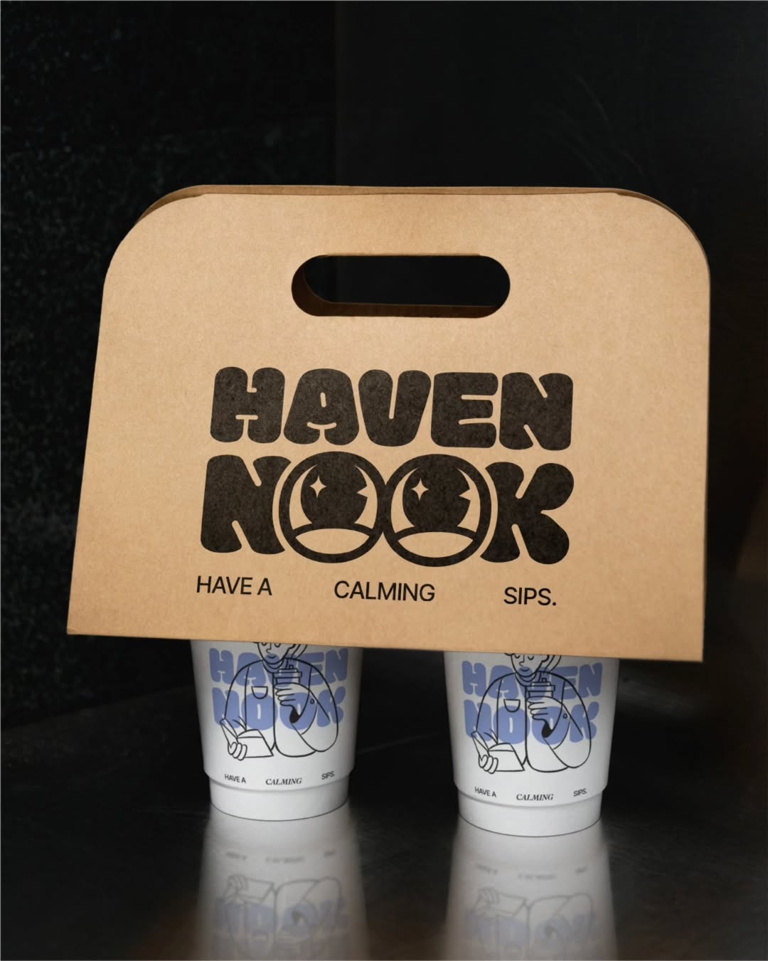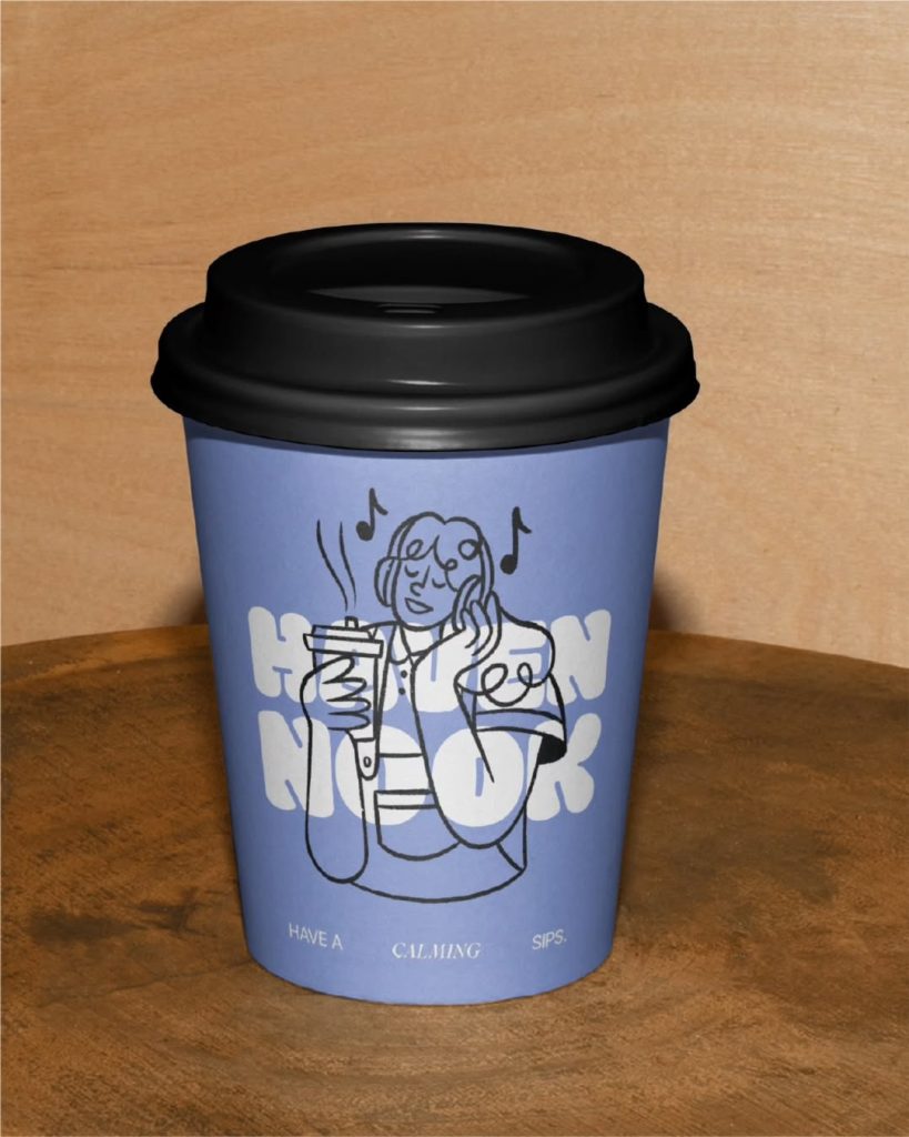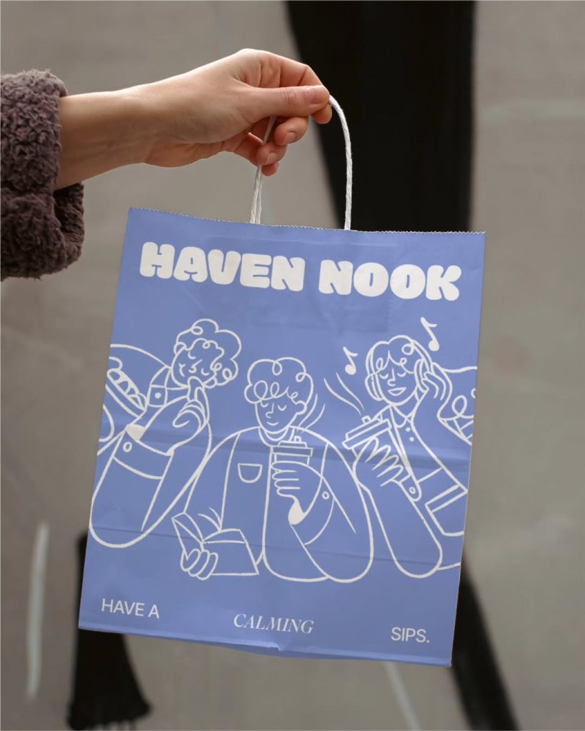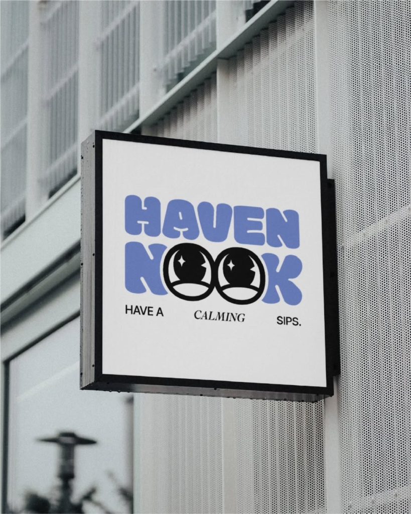 Haven Nook is our take on how a coffee shop brand can feel warm, playful, and unapologetically relaxing. From the bubbly typeface to the serene lilac palette and whimsical line illustrations, every detail invites you to sip slow and be yourself.