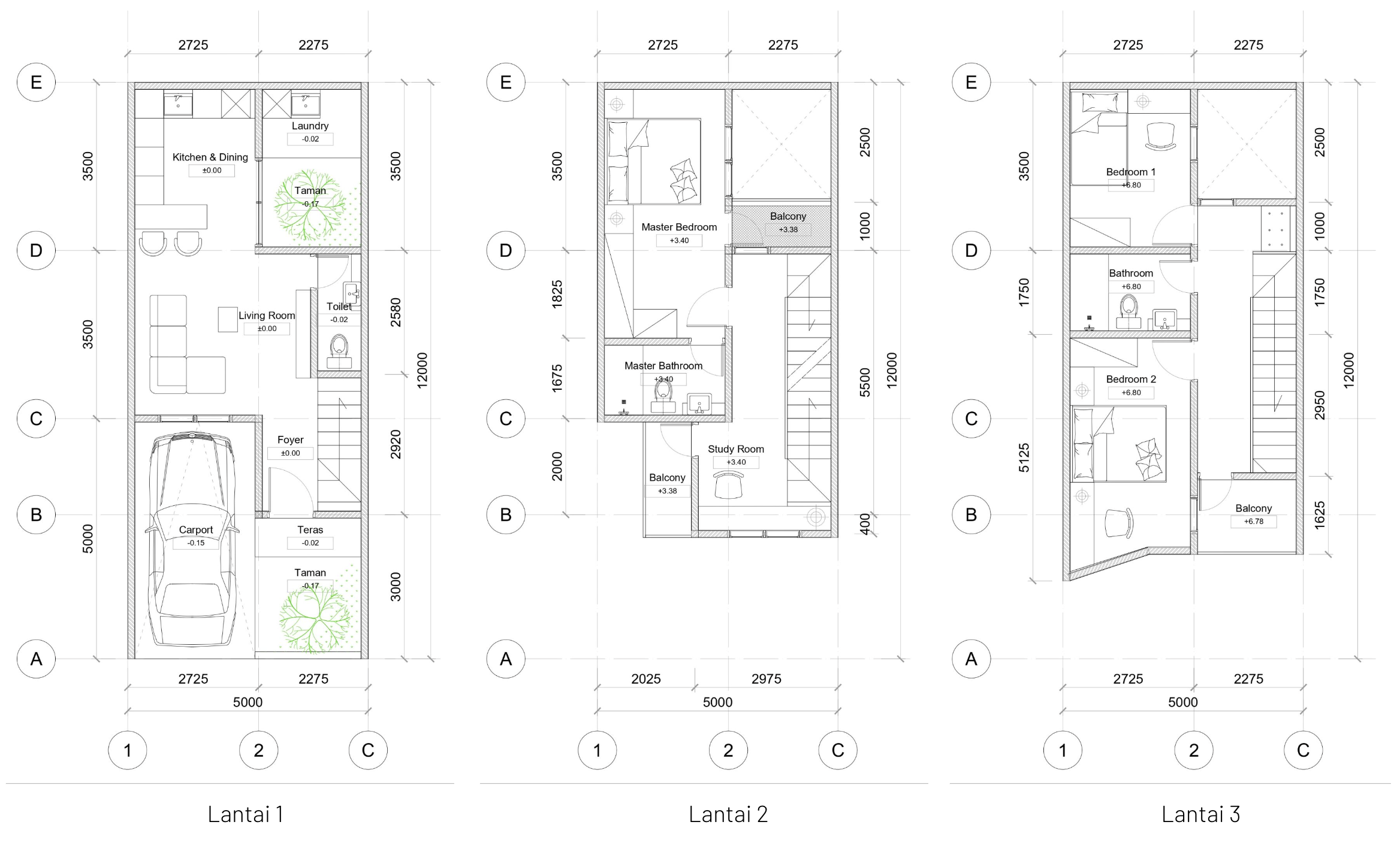 Row House is a typology of houses that recently be popular for urban people in Jakarta. This is due to the shortage of land and the skyrocketing land price. This project aimed to design 3-storey house with playful massing and facade to make a more exciting neighborhood.
